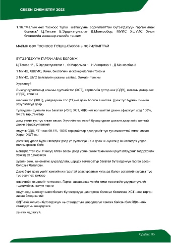 боломж" Ц.Төгсөө Б.Эрдэнэтунгалаг Д.Монхообор, МУИС ХШУИС Хими