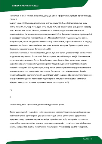 эх үүсвэрээс гарган авах боломжтой, байгаль орчинд ээлтэй био-түлш юм [3]. Биодизель нь