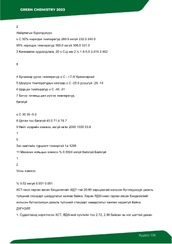 ХСТ-ноос гарган авсан биодизелийг ӨДТ-тэй 20:80 харьцаатай хольсон бүтээгдэхүүн дизель