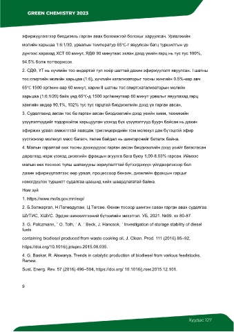 2. Б.Золжаргал, Н.Пагмадулам, Ц.Төгсөө. Өөхөн тосоор шингэн саван гарган авах судалгаа.