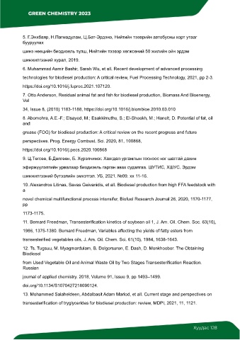 9. Ц.Төгсөө, Б.Дөлгөөн, Б. Хүрэлчимэг. Хаягдал ургамлын тосноос нэг шаттай дахин