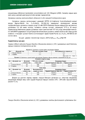 Хүснэгт 3. Ургамлын түүхий эдийн хандлагдах бодисын гарцын хэмжээг тодорхойлсон үр дүн