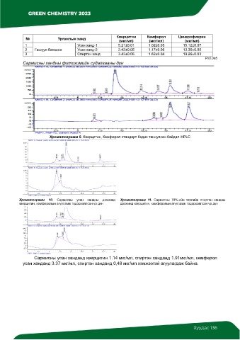 кверцитин, кемферолын агууламж тодорхойлсон үр дүн дээжинд кверцитин, кемферолын агууламж тодорхойлсон үр дүн
