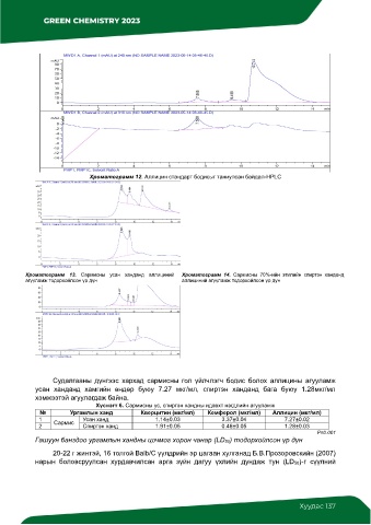Хроматограмм 13. Сармисны усан ханданд аллициний Хроматограмм 14. Сармисны 70%-ийн этилийн спиртэн ханданд