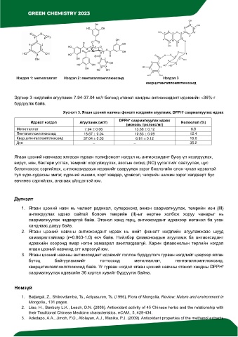 Эдгээр 3 нэгдлийн агууламж 7.94-37.04 мг/г бөгөөд этанол хандны антиоксидант идэвхийн 36%-г