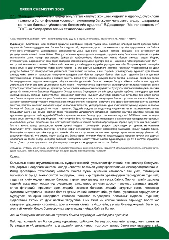 Түлхүүр үг: хүдрийн шинж чанар, мэдрэгчид суурилсан технологи, шинэ нэр төрлийн урвалжууд, флотацийн технологи, нөлөөлөх хүчин