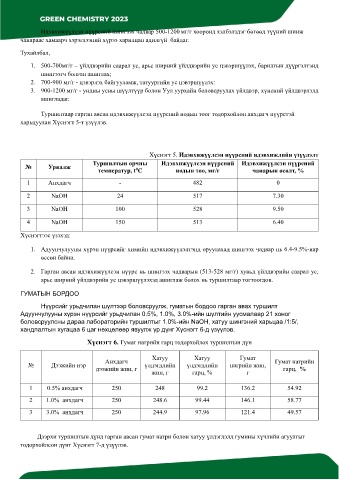 Хүснэгт 6. Гумат натрийн гарц тодорхойлох туршилтын дүн