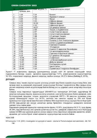 Хүснэгт 11 асфальтены фракцид (дихлорметанд уусдаг) нийт 26 органик нэгдлүүдийг таньж