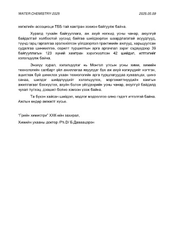 Page 10 - "Water Chemistry 2025" усны хими, химийн технологийн үндэсний онол, практикийн хурал, хэлэлцүүлэг