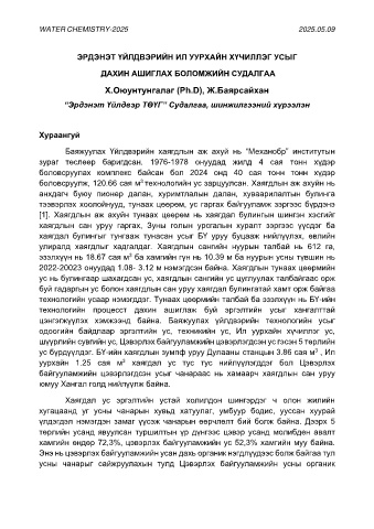 Page 14 - "Water Chemistry 2025" усны хими, химийн технологийн үндэсний онол, практикийн хурал, хэлэлцүүлэг